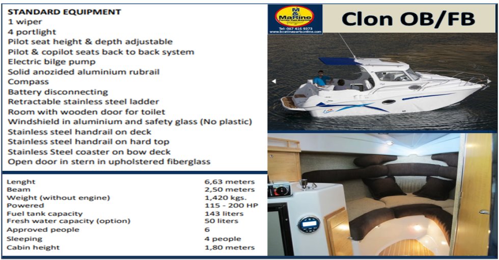 Please Contact Us For Prices or for any queries you might have regarding the CLON FB / OB Motor Cruiser.