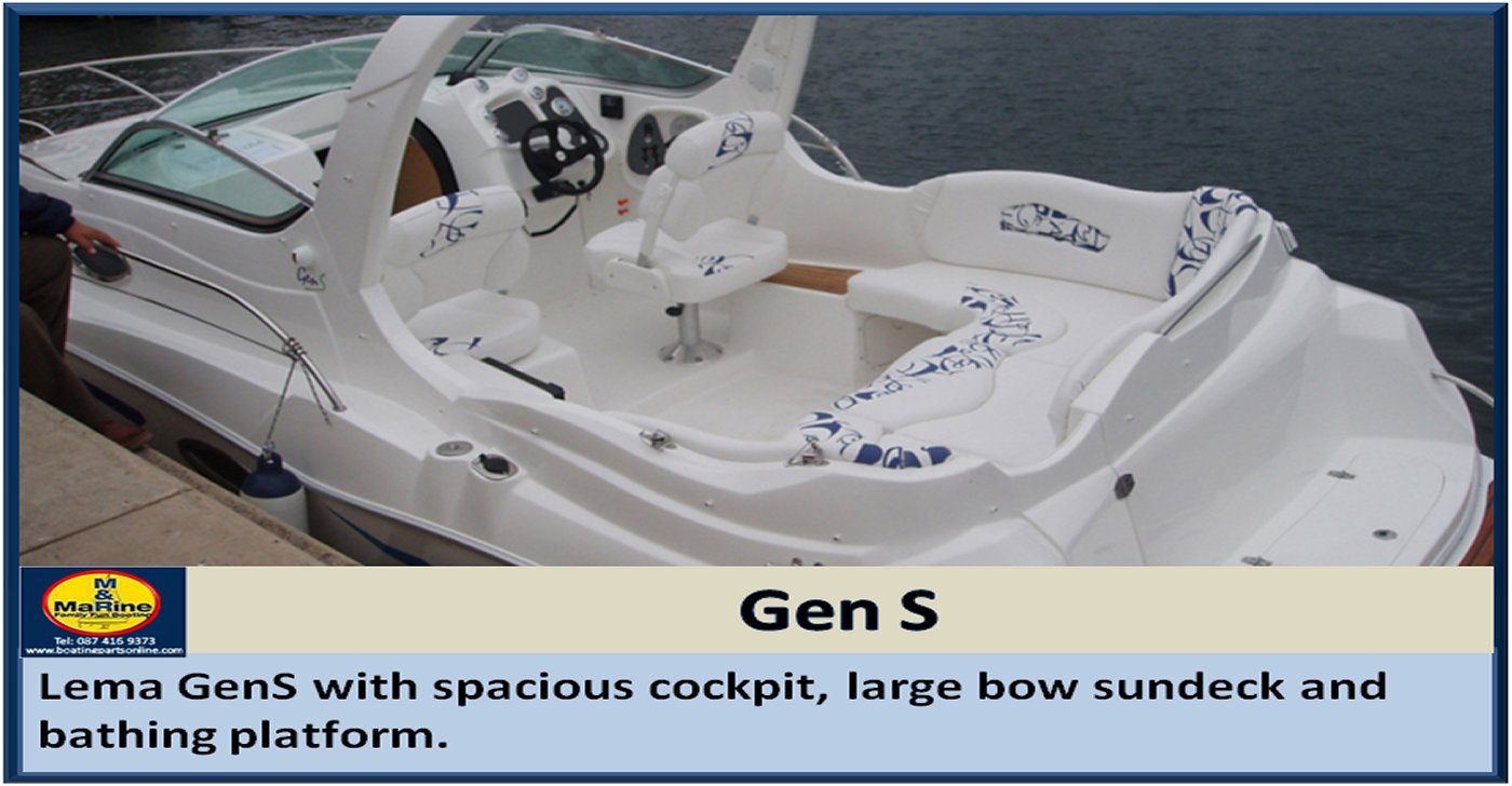 Lema Boats is represented exclusively in Ireland and the UK by M and R Marine plc, Broombridge Business Centre, 288 Bannow Road Dublin 7. 087 416 9373 and in the UK by appointed agents. M and R Marine Ltd has been supporting mariners since 2000 and we are pleased to be able to do so. M and R Marine seeks to offer you excellence in family fun boating. Nothing beats relaxing on the water. We supply chandlery to Mariners via our online site www.BoatingPartsOnline.com which was formed in 2008 from a need we perceived to provide high quality chandlery to the boating public at reasonable prices. BoatingPartsOnline.com is a wholly owned sibling website of M and R Marine Ltd. Our objective is to offer : boating enthusiasts excellence in marine services and products in Ireland and elsewhere. When you purchase from us we offer the full range of back up and support. Your satisfaction is our business. We thank you for your custom.