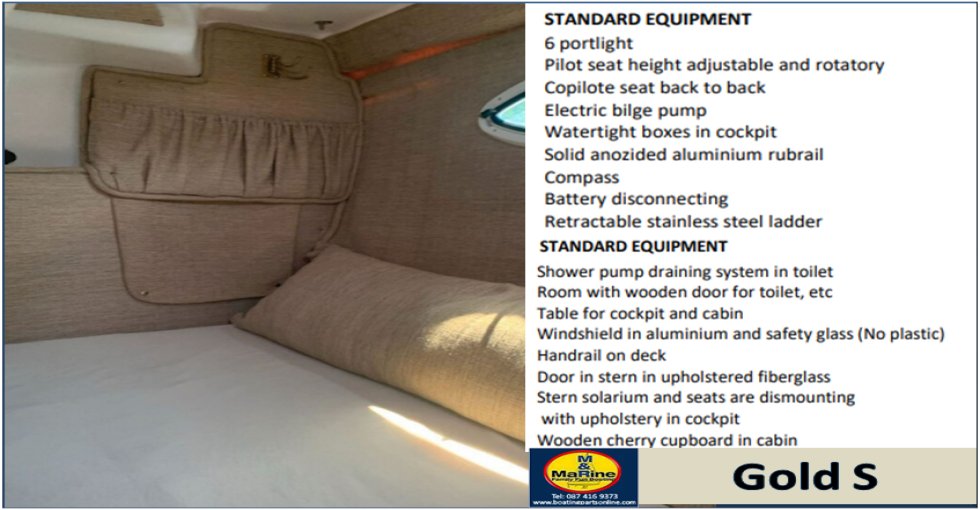 Please Contact Us For Prices or for any queries you might have regarding the GOLD S Motor Cruiser.